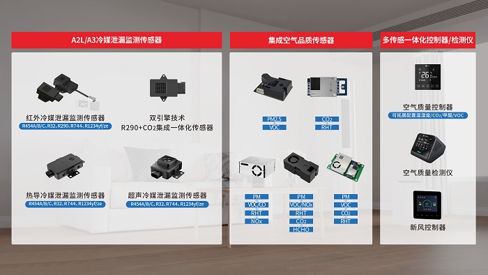 长期以来,四方光电始终专注于传感技术的创新,致力于为客户提供优质、可靠的解决方案。在冷媒泄漏监测领域,系列冷媒泄漏监测传感器可以覆盖全A2L/A3冷媒,“首创”双引擎技术,单一传感器即可实现R290冷媒泄漏防控与CO₂舒适性监测,兼顾舒适与安全,有效降低成本,助力产品改革升级。在空气质量监测领域,All-in-one集成空气品质传感器体积小巧,可集成监测8项空气指标,采用模块化设计,支持灵活选配,广泛适配多种应用场景。