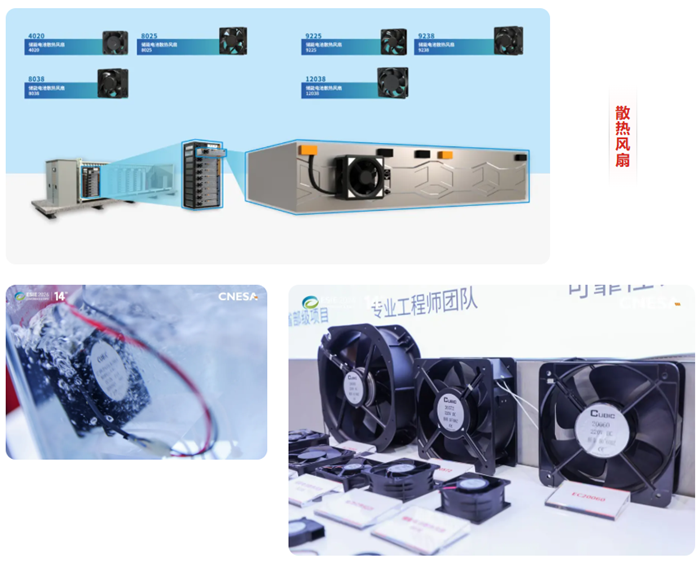 在现场的动态演示展区,四方光电储能专用风扇方案展示了卓越的气流稳定性与防水防尘性能: