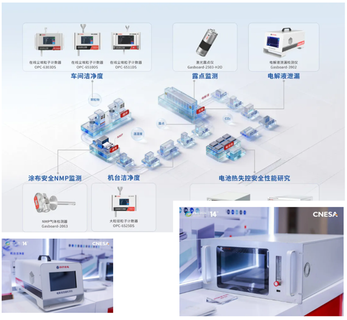 四方光电致力于为新能源产业构建全方位的技术护航,从过程环境控制到核心性能攻关,助力企业提升电池核心竞争力。在生产端,通过高精度 NMP 浓度监测,可有效降低维护成本,提升生产连续性与稳定性,为企业创造显著经济效益,同时为员工人身安全提供更可靠保障;在线露点分析、粒子计数及电解液泄漏检测,在干燥间与洁净室构建起严苛的环境屏障,全方位保障电芯的纯净品质。在研发端,依托承接“国家重大科学仪器设备开发专项”的深厚积淀,激光拉曼气体分析仪可为电芯性能优化、产气机制研究及安全性评估提供关键的数据支撑。