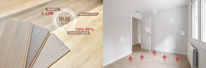◆ 辅助净化:配合具有甲醛清除能力的空气净化器或新风机,在关窗期间持续净化。