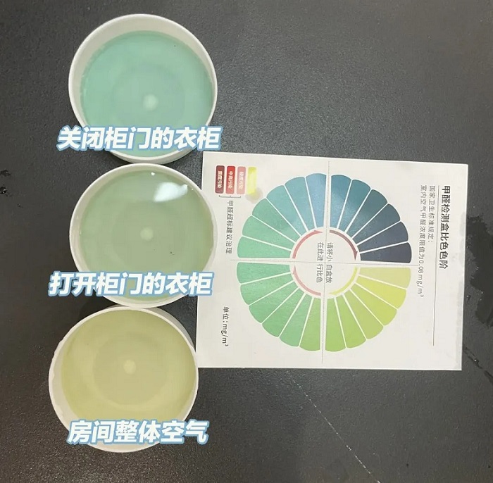 甲醛检测盒放置在同一房间不同区域试剂变化实验(网图)