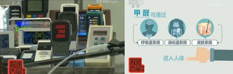 甲醛可通过呼吸道系统、细化到系统、皮肤系统进入人体(CCTV“质量报告”栏目画面)